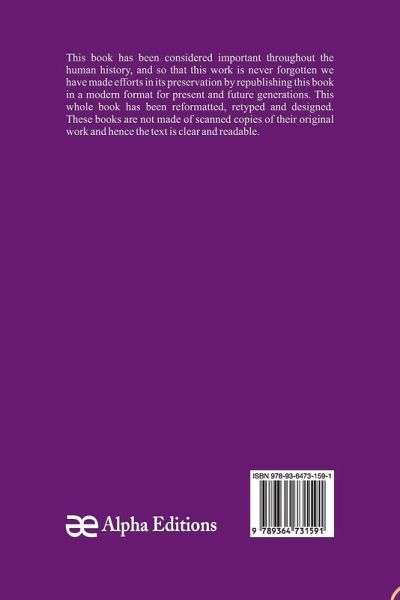 The Cameronians: A Novel, Volume 3" is a classic book, that has held significant value throughout history, and to ensure its timeless wisdom is never lost, Alpha Editions has carefully preserved it by republishing it in a modern, accessible format for both present and future generations. Thoughtfully reformatted, retyped, and newly designed, this edition offers a clear and readable text-free from scanned copies of the original work. Alpha Editions is dedicated to breathing new life into antique and classic books, making these literary treasures available once again for readers who cherish history, culture, and timeless knowledge.…mehr