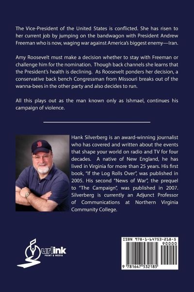 The Vice-President of the United States is conflicted. She has risen to her current job by jumping on the bandwagon with President Andrew Freeman who is now, waging war against America’s biggest enemy—Iran. Amy Roosevelt must make a decision whether to stay with Freeman or challenge him for the nomination. Though back channels she learns that the President’s health is declining. As Roosevelt ponders her decision, a conservative back bench Congressman from Missouri breaks out of the wanna-bees in the other party and also decides to run. All this plays out as the man known only as Ishmael, continues his campaign of violence.