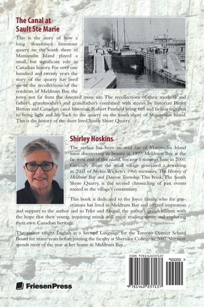 This is the story of how a long abandoned limestone quarry on the south shore of Manitoulin Island played a small, but significant role in Canadian history. For over one hundred and twenty years the story of the quarry has lived on in the recollections of the residents of Meldrum Bay, the town not far from the deserted mine site. The recollections of their mother's and father's, grandmother's and grandfather's combined with stories by historian Pierre Berton and Canadian canal historian, Robert Passfield bring fact and fiction together to bring light and life back to the quarry on the south shore of Manitoulin Island. This is the history of the short lived South Shore Quarry....