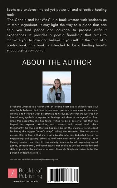 ""Books are underestimated yet powerful and effective healing tools. "The Candle and her Wick" is a book written with kindness as its main ingredient. It may light the way to a place that can help you find peace and courage to process difficult experiences. It provides a poetic friendship that aims to motivate you to love and believe in yourself. In the form of a poetry book, this book is intended to be a healing heart's encouraging companion.""