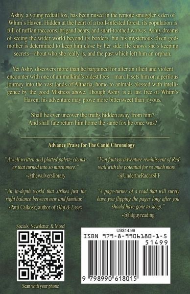 Ashiy, a young redtail fox, has been raised in the remote smuggler's den of Whim's Haven. Hidden at the heart of a troll-infested forest, its population is full of ruffian raccoons, brigand bears, and snarl-toothed wolves. Ashiy dreams of seeing the wider world beyond its borders, but his mysterious elven godmother is determined to keep him close by her side. He knows she's keeping secrets-about who she really is, and the past which left him an orphan. Yet Ashiy discovers more than he bargained for after an illicit and violent encounter with one of animalkind's oldest foes-man. It sets him on a perilous journey into the vast lands of Altharia, home to animals blessed with intelligence by the good Mistress above. Though Ashiy is at last free of Whim's Haven, his adventure may prove more bittersweet than joyous. Shall he ever uncover the truths hidden away from him? And shall fate return him home the same fox he once was?