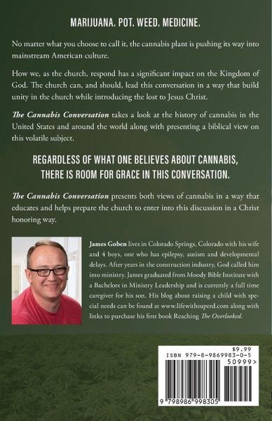 Marijuana. Pot. Weed. Medicine. No matter what you choose to call it, the cannabis plant is pushing its way into mainstream American culture and the mainstream church. How the church responds to the cannabis conversation has a significant impact on the Kingdom of God. The world outside the church is actively engaging in this conversation and, as a result, their world view is dominating the discussion. The shift in how Americans view marijuana creates new opportunities for discussion along with a new set of problems to be worked through, especially for the church. What we are seeing now is nothing more than a shift back to the view Americans held prior to the twentieth century. The Cannabis Conversation provides the reader with some important historical data on the cannabis plant along with a biblical view, both for and against, cannabis use. The goal is not to lead the reader to a conclusion on this touchy subject, instead presenting the facts, data and Scripture in an unbiased way that opens the door for genuine, Christ honoring conversations. From cannabis as medicine to the gateway drug title, The Cannabis Conversation presents the facts, myths and biblical view of this volatile subject.