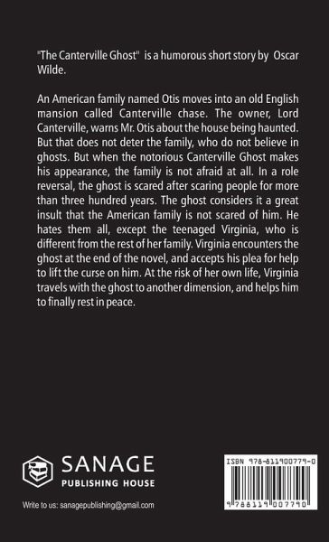 ""The Canterville Ghost"" is a humorous short story by Oscar Wilde. An American family named Otis moves into an old English mansion called Canterville chase. The owner, Lord Canterville, warns Mr. Otis about the house being haunted. But that does not deter the family, who do not believe in ghosts. But when the notorious Canterville Ghost makes his appearance, the family is not afraid at all. In a role reversal, the ghost is scared after scaring people for more than three hundred years. The ghost considers it a great insult that the American family is not scared of him. He hates them all, except the teenaged Virginia, who is different from the rest of her family. Virginia encounters the ghost at the end of the novel, and accepts his plea for help to lift the curse on him. At the risk of her own life, Virginia travels with the ghost to another dimension, and helps him to finally rest in peace.