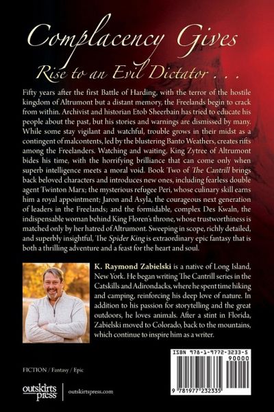 Fifty years after the first Battle of Harding, with the terror of the hostile kingdom of Altrumont but a distant memory, the Freelands begin to crack from within. Archivist and historian Etob Sheerbain has tried to educate his people about the past, but his stories and warnings are dismissed by many. While some stay vigilant and watchful, trouble grows in their midst as a contingent of malcontents, led by the blustering Banto Weathers, creates rifts among the Freelanders. Watching and waiting, King Zytree of Altrumont bides his time, with the horrifying brilliance that can come only when superb intelligence meets a moral void. Book Two of The Cantrill brings back beloved characters and introduces new ones, including fearless double agent Twinton Marx; the mysterious refugee Peri, whose culinary skill earns him a royal appointment; Jaron and Asyla, the courageous next generation of leaders in the Freelands; and the formidable, complex Des Kwaln, the indispensable woman behind King Floren's throne, whose trustworthiness is matched only by her hatred of Altrumont. Sweeping in scope, richly detailed, and superbly insightful, The Spider King is extraordinary epic fantasy that is both a thrilling adventure and a feast for the heart and soul.