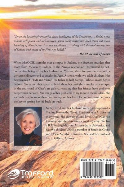 "Set in the hauntingly beautiful desert landscapes of the Southwest . . . Redd’s novel is both well-paced and well-written. What really makes this book stand out is her blending of Navajo practices and worldview . . . along with detailed descriptions of Sedona and many of its New Age beliefs." - The US Review of Books When MAGGIE stumbles over a corpse in Sedona, she discovers murders that reach from Mexico to Sedona to the Navajo reservation. Tormented by self-doubt after being left by her husband of 25 years, she is forty-seven years old, a personnel director and counselor in Page, Arizona, with two adult children. Her best friends, CHAR and Victor (the father to half-Navajo Tiahna), invite her to Sedona. She expects her retreat to be all about her until she stumbles over a corpse in the courtyard of Char’s art gallery, revealing that her friends have problems deeper than her own. She lets go of her problems to try to solve the murders. She succeeds despite more than one attempt on her life. Her commitment becomes the key to getting her life back on track.