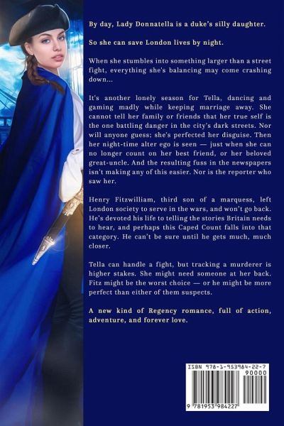 By day, Lady Donnatella is a duke's silly daughter. So she can save London lives by night. When she stumbles into something larger than a street fight, everything she's balancing may come crashing down... It's another lonely season for Tella, dancing and gaming madly while keeping marriage away. She cannot tell her family or friends that her true self is the one battling danger in the city's dark streets. Nor will anyone guess; she's perfected her disguise. Then her night-time alter ego is seen - just when she can no longer count on her best friend, or her beloved great-uncle. And the resulting fuss in the newspapers isn't making any of this easier. Nor is the reporter who saw her. Henry Fitzwilliam, third son of a marquess, left London society to serve in the wars, and won't go back. He's devoted his life to telling the stories Britain needs to hear, and perhaps this Caped Count falls into that category. He can't be sure until he gets much, much closer. Tella can handle a fight, but tracking a murderer is higher stakes. She might need someone at her back. Fitz might be the worst choice - or he might be more perfect than either of them suspects. A new kind of Regency romance, full of action, adventure, and forever love