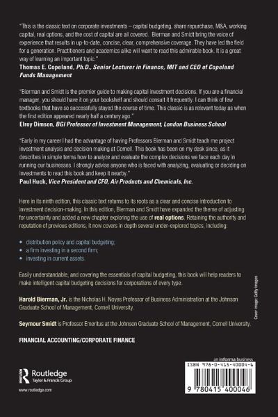 Harold Bierman, Jr. is the Nicholas H. Noyes Professor of Business Administration at the Johnson Graduate School of Management, Cornell University. Seymour Smidt is Professor Emeritus at the Johnson Graduate School of Management, Cornell University.