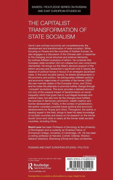 David Lane outlines succinctly yet comprehensively the development and transformation of state socialism. While focussing on Russia and the countries of Eastern Europe, he also engages in a discussion of the Chinese path. In response to the changing social structure and external demands, he outlines different scenarios of reform. He contends that European state socialism did not collapse but was consciously dismantled. He brings out the West's decisive support of the reform process and Gorbachev's significant role in tipping the balance of political forces in favour of an emergent ascendant class. In the post-socialist period, he details developments in the economy and politics. He distinguishes different political and economic trajectories of countries of the former USSR, the New Member States of the European Union, and China; and he notes the attempts to promote further change through 'coloured' revolutions. The book provides a detailed account not only of the unequal impact of transformation on social inequality which has given rise to a privileged business and political class, but also how far the changes have fulfilled the promise of democracy promotion, wealth creation and human development. Finally, in the context of globalisation, the author considers possible future political and economic developments for Russia and China. Throughout the author, a leading expert in the field, brings to bear his deep knowledge of socialist countries, draws on his research on the former Soviet Union, and visits to nearly all the former state socialist countries, including China.