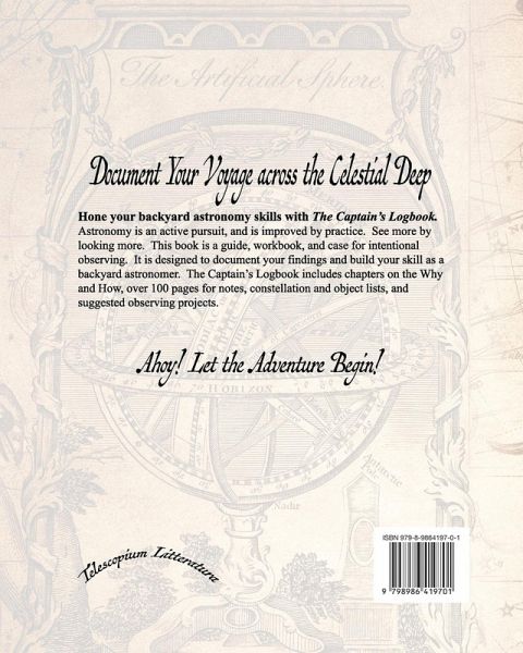 The Captain's Logbook - A workbook & journal to improve your backyard astronomy skills. Do you look without seeing? Astronomy is an active pursuit. The more one practices paying attention, the more one sees. This book is a guide, workbook, and case for intentional observing. Designed to build your skill as a backyard astronomer, The Captain's Logbook includes chapters on the Why and How, over 100 pages for notes, and suggested observing projects. Ahoy! Let the adventure begin!