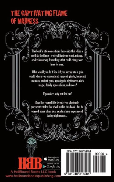 This book's title comes from the reality that - like a moth to the flame - we're all just one event, mishap, or decision away from things that could change our lives forever. What would you do if fate led you astray into a grim world where you encountered vengeful ghosts, homicidal maniacs, ancient gods, apocalyptic nightmares, dark magic, deadly space aliens, and more? If you dare, why not find out? Read for yourself the twenty-two gloriously provocative tales that dwell within this book - but be warned, some of my dear readers have experienced lasting nightmares...