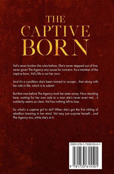 Val is a member of the captive born. She's been trained her whole life for a moment like this. A moment where she is sold to a man she doesn't know, but whom she must please... in any way he sees fit. Because in Val's world, that's the law. The civil war never happened and slavery is legal. But it's not based on race, religion or creed. The government stepped in long ago and made certain that everything was fair, that every faction of society was represented equally. But that doesn't mean everyone agrees. No. The country is actually split right down the middle over the issue of captive lives, with tension rising all the time. And the Riggs family in particular has spent decades leading the charge to abolish the practice. So when their heir apparent makes a move no one anticipated, it comes as quite a shock. Because Jason Riggs is now the head of that powerful family and the eye of the country is on him. He's rich and young and talented. He has everything he could ever want... and then he sees Val. She's forbidden to him, but he just can't help himself, he has to have her. So he does the one thing his family would never approve of... he buys her.