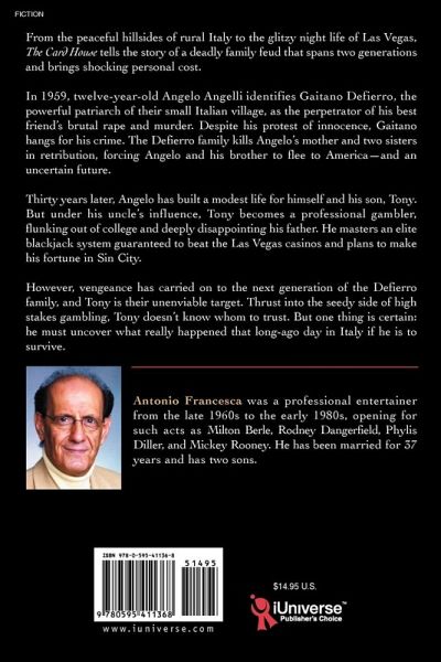 From the peaceful hillsides of rural Italy to the glitzy night life of Las Vegas, The Card House tells the story of a deadly family feud that spans two generations and brings shocking personal cost. In 1959, twelve-year-old Angelo Angelli identifies Gaitano Defierro, the powerful patriarch of their small Italian village, as the perpetrator of his best friend's brutal rape and murder. Despite his protest of innocence, Gaitano hangs for his crime. The Defierro family kills Angelo's mother and two sisters in retribution, forcing Angelo and his brother to flee to America-and an uncertain future. Thirty years later, Angelo has built a modest life for himself and his son, Tony. But under his uncle's influence, Tony becomes a professional gambler, flunking out of college and deeply disappointing his father. He masters an elite blackjack system guaranteed to beat the Las Vegas casinos and plans to make his fortune in Sin City. However, vengeance has carried on to the next generation of the Defierro family, and Tony is their unenviable target. Thrust into the seedy side of high stakes gambling, Tony doesn't know whom to trust. But one thing is certain: he must uncover what really happened that long-ago day in Italy if he is to survive.