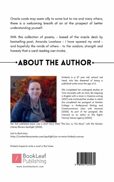 Oracle cards may seem silly to some but to me and many others, there is a welcoming breath of air at the prospect of better understanding yourself. With this collection of poems, - based of the oracle deck by bestselling poet, Amanda Lovelace - I have opened my mind - and hopefully the minds of others - to the wisdom, strength and honesty that a card reading can invoke.
