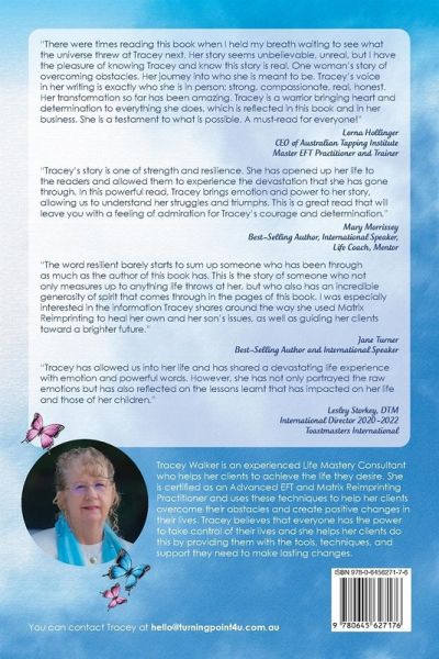 This is an inspiring and heart-warming story about how one woman managed to find hope in the midst of despair. Tracey's journey is one of building resilience and courage in the face of challenges because her life has forced her to get good at overcoming the odds. Born into a violent alcoholic environment, she was determined to make something of herself despite the obstacles in her way. Throughout this book, readers will hear about how one woman's childhood imprints held her in a never-ending cycle of dysfunctional relationships until something major happened that changed everything. This book is the story of how Tracey overcame the trauma of her past and found happiness and fulfillment through helping others to go on their own journey of self-discovery and healing so that they can break free from any imprints that are holding them back. Tracey invites readers to reflect on their own lives through her learned experiences, and encourages us to take a step back and think about things in a different light. Her reflections are aimed at encouraging the reader to gain an empowering perspective on any challenges they are facing to make a brighter future for themselves.