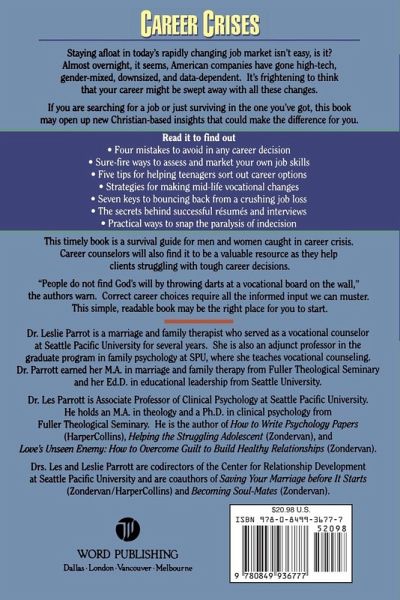This is a practical resource for pastors, counselors and individuals needing guidance and strategies for career direction, career transitions, career crisis and job searching. Specific struggles and choices encountered on the career development journey are addressed.