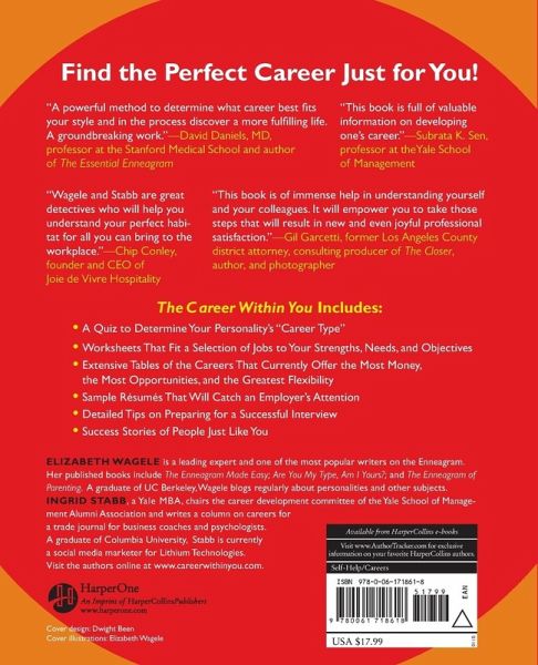 "Wagele and Stabb are great detectives who will help you understand your perfect habitat for all you can bring to the workplace. --Chip Conley, Founder/CEO, Joie de Vivre Hospitality, and author of Peak Employing the Enneagram Personality Assessment System, Elizabeth Wagele, author of The Enneagram Made Easy, and career workshop and events organizer Ingrid Stabb can help you discover The Career Within You. Unlike "one-size-fits-all" self-help business books, The Career Within You provides everything you need to fully understand your individual strengths, gifts, needs, and distinct personality traits, and will point you toward a job uniquely tailored to you. "It will free you to become the person you know you really want to be," says Gil Garcetti, former Los Angeles County District Attorney and Consulting Producer of "The Closer."