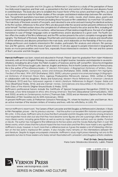 The Careers of Burt Lancaster and Kirk Douglas as Referenced in Literature is a study of the perception of these two Hollywood megastars and their work, as presented in the text and context of references and allusions found in world literature. This book also aims to establish the impact factor of the two actors and their major films, as well as to provide extensive data for further studies of the complex and bilateral relationships between film and literature. The pertinent quotations have been extracted from over 150 works—novels, short stories, plays, poems and some nonfiction biographies and memoirs (excluding those focused on film celebrities)—by more than 120 authors. The main body of the book consists of two parts, each devoted to one actor and each having five identical sections. In the first section, references to the actor’s films are discussed while the second section presents references to the actor himself. The third section shows the complete list of references found to the actor and his films, including references not mentioned in the first two sections—either because of their relative insignificance, the lack of an English translation in case of foreign-language works or repetitiveness and/or abundance in a given work. The fourth section offers the credits of the films referenced, and the fifth section presents the actor’s complete monographic bibliography. The third part of the book, ‘Epilogue: Final Remarks and Conclusions,’ provides an analysis and classification of all the references and allusions presented in the main body, and it elaborates on the friendship of the two actors. College professors and students interested in film studies, particularly film analysis and criticism, film perception and film genres, will find this book of great interest. It will also appeal to people interested in biographical books on movie personalities and movie fans, especially those interested in westerns, film noir and the careers of Burt Lancaster and Kirk Douglas.