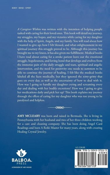 A Caregiver Within was written with the intention of helping people tasked with caring for their loved ones. This book will detail my journey, my struggles, my hopes, and my victories while caring for my daughter with the help of Spirit, Angels, and my family. You will read about how I wanted to give up; how I felt blessed, and what enlightenment in my spiritual journey this struggle proved to be. Although this journey has brought me to my knees, it has also given me fulfillment. Medical books I have read about caring for a stroke patient leave out the emotional struggle, hopelessness, and loving bond that develops and evolves from the immense pain of the daily struggle and tears, spiritual and angelic intervention, and the need for positivity one needs to summon to be able to continue the journey of healing. I felt like the medical books labeled all the facts medically, but they ignored the nitty-gritty that goes on every day, as well as the uncertainty of how to deal with it. How was I going to handle my daughter crying and screaming every day and dealing with her bodily excretions? How was I going to give her medications daily and pick her up? This book explains my journey through the effort of caring for my daughter who was too young to be paralyzed and helpless.