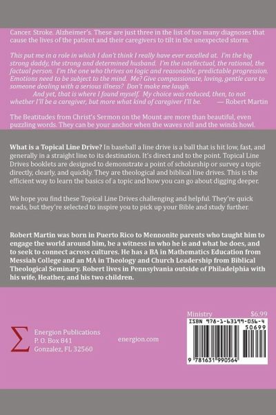 Cancer. Stroke. Alzheimer's. These are just three in the list of too many diagnoses that cause the lives of the patient and their caregivers to tilt in the unexpected storm. This put me in a role in which I don't think I really have ever excelled at. I'm the big strong daddy, the strong and determined husband. I'm the intellectual, the rational, the factual person. I'm the one who thrives on logic and reasonable, predictable progression. Emotions need to be subject to the mind. Me? Give compassionate, loving, gentle care to someone dealing with a serious illness? Don't make me laugh. And yet, that is where I found myself. My choice was reduced, then, not to whether I'd be a caregiver, but more what kind of caregiver I'd be. - Robert Martin The Beatitudes from Christ's Sermon on the Mount are more than beautiful, even puzzling words. They can be your anchor when the waves roll and the winds howl.