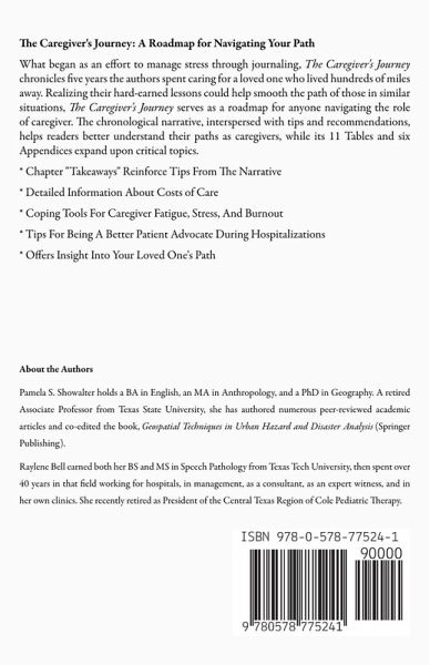 The Caregiver's Journey: A Roadmap for Navigating Your Path What began as an effort to manage stress through journaling, The Caregiver's Journey chronicles five years the authors spent caring for a loved one who lived hundreds of miles away. Realizing their hard-earned lessons could help smooth the path of those in similar situations, The Caregiver's Journey serves as a roadmap for anyone navigating the role of caregiver. The chronological narrative, interspersed with tips and recommendations, helps readers better understand their path as caregivers, while its 11 Tables and six Appendices expand upon critical topics. * Chapter "Takeaways" Reinforce Tips From The Narrative * Detailed Information About Costs of Care * Coping Tools For Caregiver Fatigue, Stress, And Burnout * Tips For Patient Advocacy During Hospitalizations * Six Appendices Provide Quick Reference Guidance