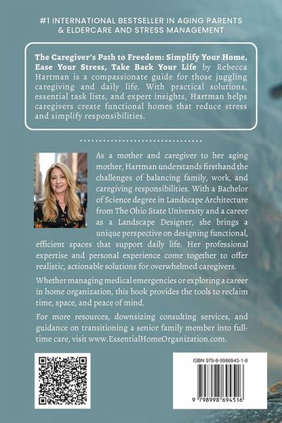 Caregiving is one of the most selfless roles you can take on, but it often comes at a cost-overwhelming stress, cluttered spaces, and an endless to-do list that leaves little room for self-care. If you're constantly juggling responsibilities, feeling stretched too thin, or struggling to keep your home and mind organized, The Caregiver's Path to Freedom by Rebecca Hartman is here to help. Whether you're caring for aging parents, young children, or both, this book provides real-world strategies to help you create order, ease stress, and regain control over your life. More than just an organization guide, this book is a roadmap to balance-offering step-by-step solutions to manage your home, responsibilities, and emotional well-being. Through easy-to-follow steps, actionable worksheets, and compassionate insights, Rebecca Hartman-caregiver, mother, and home organization expert-guides you through a transformational journey. You'll learn how to simplify your space, streamline your tasks, and set boundaries to protect your time and energy. With practical tips and encouragement, this book empowers you to move from survival mode into a life where you feel in control again. What You'll Discover in This Essential Guide:Declutter and organize with ease Time-saving systems Caregiver burnout solutions Essential home management worksheets Delegation and boundary Downsizing and moving strategies How to reclaim your identity