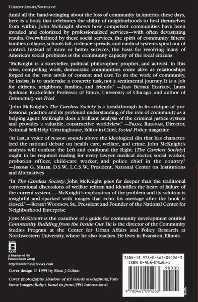 Amid all the hand-wringing about the loss of community in America these days, here is a book that celebrates the ability of neighborhoods to heal themselves from within. John McKnight shows how competent communities have been invaded and colonized by professionalized services-often with devastating results. Overwhelmed by these social services, the spirit of community falters: families collapse, schools fail, violence spreads, and medical systems spiral out of control. Instead of more or better services, the basis for resolving many of America's social problems is the community capacity of the local citizens.