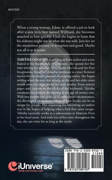 When a young woman, Edme, is offered a job to look after a sick little boy named Willhard, she becomes attached to him quickly. Until she begins to learn that his sickness might not be what she was told. Join her on the mysterious journey of deception and greed. Maybe not all is as it seems.