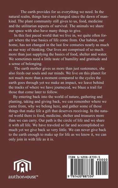 The earth provides for us everything we need. In the natural realm, things have not changed since the dawn of mankind. The plant community still gives to us, food, medicine and the utilitarian aspects of survival. The animals we share our space with also have many things to give. In this fast paced world that we live in, we quite often forget where the true basics of life come from. Our habitat, our home, has not changed in the last few centuries nearly as much as our way of thinking. Our lives are comprised of so much more than just supplying the basics of food, shelter and water. We sometimes need a little taste of humility and gratitude and a sense of belonging. The earth mother gives us more than just sustenance, she also feeds our souls and our minds. We live on this planet for not much more than a moment compared to the cycles the earth goes through yet we make an impact, we leave behind the tracks of where we have journeyed, we blaze a trail for those that come later to follow. By entering back into the world of nature, gathering and planting, taking and giving back, we can remember where we came from, why we belong here, and gather some of those things that make life a gift that deserves receiving. In the natural world there is food, medicine, shelter and treasures more than we can carry. Our path is the circle of life and we share it with all life. We have traveled so far and accomplished so much yet we give back so very little. We can never give back to the earth enough to make up for life as we know it, we can only join in with life as it is.