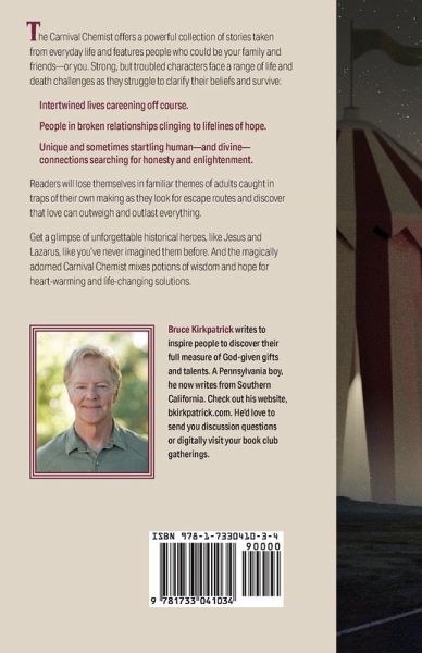 The Carnival Chemist offers a powerful collection of stories taken from everyday life and features people who could be your family and friends-or you. Strong, but troubled characters face a range of life and death challenges as they struggle to clarify their beliefs and survive: Intertwined lives careening off course. People in broken relationships clinging to lifelines of hope. Unique and sometimes startling human-and divine-connections searching for honesty and enlightenment. Readers will lose themselves in familiar themes of adults caught in traps of their own making as they look for escape routes and discover that love can outweigh and outlast everything. Get a glimpse of unforgettable historical heroes, like Jesus and Lazarus, like you've never imagined them before. And the magically adorned Carnival Chemist mixes potions of wisdom and hope for heart-warming and life-changing solutions.