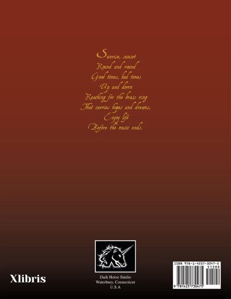 Sunrise, sunset Round and round Good times, bad times Up and down Reaching for the brass ring That carries hopes and dreams Enjoy life Before the music ends. Dark Horse Studio Waterbury, Connecticut U.S.A.