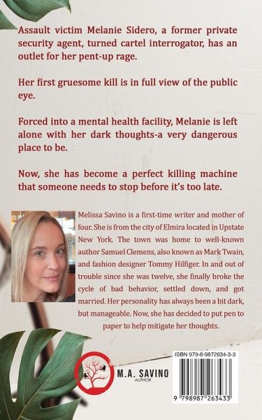 The Carpenter's Chameleon is book two of the Sidero series. Melanie Sidero, a former security agent, turned cartel interrogator, has an outlet for her pent-up rage. Her first gruesome kill is in full view of the public eye, which lands her in a mental health facility. Now, her doctors have decided that her best chance of getting well is being isolated in a cabin under surveillance to help discover her true nature. Unfortunately for them, they were wrong, and being herself has made Melanie the perfect killing machine. Will they be able to stop her before it is too late?