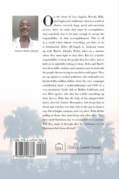 On the streets of Los Angeles, Beverly Hills, and Inglewood CA . . . , and, in a world of chance, survival, hope, greed, and uncertain success, there are tasks that must be accomplished, and somebody has to be man enough to accept the responsibility of that accomplishment. This is all in a world where almost everything you have to do is detrimental. Debo (D-Angelo L. Jackson) teams up with Mad-C (Charles Write) to take on a mission where they must fight to stay alive. But it's an even harder responsibility to fight to keep the people they love alive, and to hold on to what rightfully belongs to them. Debo and Mad-C uses their skills, wisdom, and common sense to deal with the people who are trying to tear their world apart. They are up against a crooked politician who embezzled one hundred and fifty million dollars from his own campaign contribution fund, a multi-millionaire and C.E.O. and chairman of the board of directors of a very prominent yacht club in Malibu, California, and two D.E.A. agents who also have a "little something" up their sleeves. Debo also has the help of his adopted little sister, Joyvette Hernandez, who keeps him in check and watches over him, but is also put in harm's way. She is bright, cautious and very alert. With all this pulling at them, they have to keep each other alive. They have until Christmas day to complete their mission. Will they make it through alive by Christmas Day? Or, will Christmas day find them all dead?