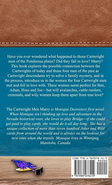 Have you ever wondered what happened to those Cartwright men of the Ponderosa plains? Did they fall in love? Marry? This book explores the possible connection between the Cartwrights of today and those four men of the past as Cartwright descendants try to solve a family mystery, and in the process, introduce us to the women the four Cartwright men meet and fall in love with. These women seem perfect for Ben, Adam, Hoss, and Joe — but will avalanches, cattle rustlers, criminals, and wily women keep them apart from true love?