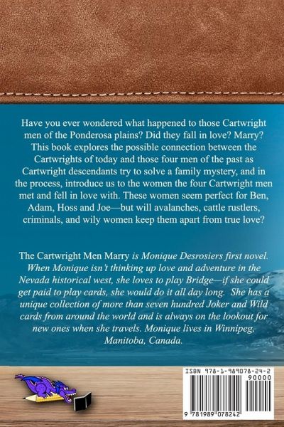 Have you ever wondered what happened to those Cartwright men of the Ponderosa plains? Did they fall in love? Marry? This book explores the possible connection between the Cartwrights of today and those four men of the past as Cartwright descendants try to solve a family mystery, and in the process, introduce us to the women the four Cartwright men meet and fall in love with. These women seem perfect for Ben, Adam, Hoss, and Joe — but will avalanches, cattle rustlers, criminals, and wily women keep them apart from true love?