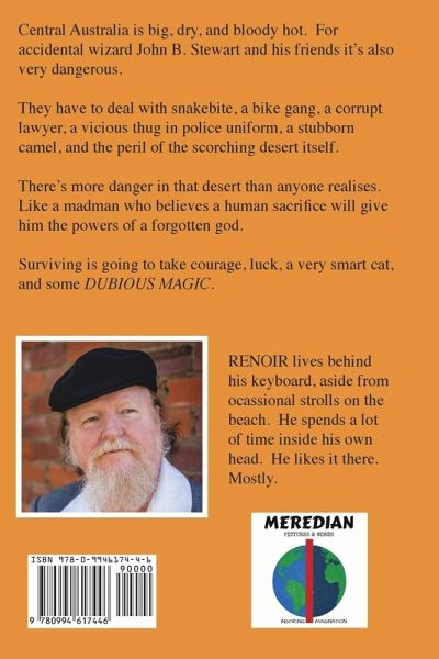 After battling a demon in a cavern below the sands of South Australia, unlikely wizard John B. Stewart and his companions travel to the centre of the continent, seeking a holiday, to rest and recover. Instead, they find themselves looking for a missing archaeologist. They run into a bike gang, a corrupt lawyer, a thug in police uniform, a deadly snake, a recalcitrant camel, and ancient mysteries. John B. and Wilko renew acquaintance with a former colleague who is more dangerous than they suspect. Finally they confront a madman who believes human sacrifice will give him the powers of a god - and he might be right. When even the elements are thrown against them, can John B.'s magic be enough to save them?
