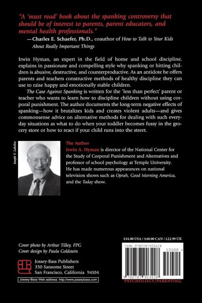 Irwin Hyman, an expert in the field of home and school discipline, explains in a passionate and compelling style why spanking or hitting children is abusive, destructive, and counterproductive. As an antidote he offers parents and teachers constructive methods of healthy discipline they can use to raise happy and emotionally stable children.The Case Against Spanking is written for the `less than perfect' parent or teacher who wants to learn how to discipline children without using corporal punishment. The author documents the long-term negative effects of spanking?how it brutalizes kids and creates violent adults?and gives common sense advice on alternative methods for dealing with such everyday situations as what to do when your toddler becomes fussy in the grocery store or how to react if your child runs into the street. .
