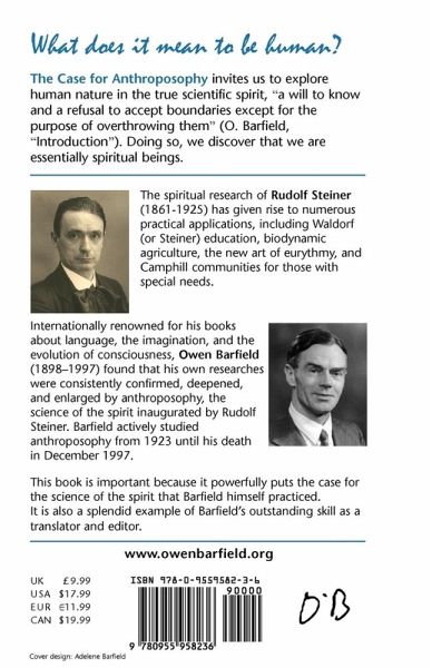 What does it mean to be human? 'The Case for Anthroposophy' invites us to explore human nature in the true scientific spirit, "a will to know and a refusal to accept boundaries except for the purpose of overthrowing them" (Owen Barfield, "Introduction"). Doing so, we discover that we are essentially spiritual beings. Internationally renowned for his books about language, the imagination, and the evolution of consciousness, Owen Barfield found that his own researches were consistently confirmed, deepened, and enlarged by anthroposophy, the science of the spirit inaugurated by Rudolf Steiner. For almost three quarters of a century, from 1923 until his death in December 1997, Barfield actively studied anthroposophy. Those who are interested in his life and work will find this volume particularly valuable, not only because it so lucidly and powerfully sets forth the case for the science of the spirit that Barfield himself practiced, but also because it is a splendid example of Barfield's outstanding skill as translator and editor.