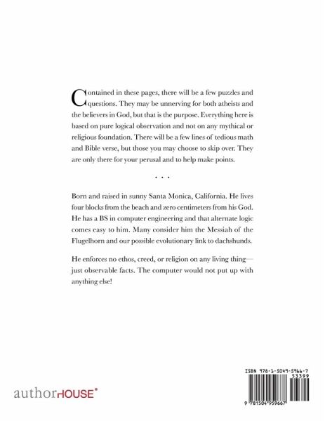 Contained in these pages, there will be a few puzzles and questions. They may be unnerving for both atheists and the believers in God, but that is the purpose. Everything here is based on pure logical observation and not on any mythical or religious foundation. There will be a few lines of tedious math and Bible verse, but those you may choose to skip over. They are only there for your perusal and to help make points.