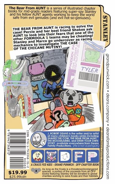 SHAKES THE COW guest-stars from her own series of picture books when she and her best friend Percie enlist the aid of Stanley and AUNT to investigate the Formoola One Racing Series! Shakes is racing for the World Championship of Formoola One, but she and her team are convinced one of their opponents are up to no good. Percie calls upon her old secret agent friends at the Animal United Network Taskforce to come see if their instincts are right, or if they're just thinking what every team thinks of their opponents. Expanding off of the story told in the SHAKES THE COW picture book MOO FAST, MOO FURRYOUS, THE CASE OF THE CHICANE MUTINY puts the Bear From AUNT right in the pits! Stanley and Marco go undercover as Formoola One mechanics for the Mooclaren team to investigate the paddock and see just what's going on behind the scenes of the world's greatest automotive racing series. Unfortunately, their greatest adversary may not be the other 19 cars on the grid and their drivers, but Stanley's complete lack of understanding of Formoola One! Can Marco and Percie teach Stanley enough about Eff-One to get him up to speed in time to save the day? Can they also find out what's going on without getting in Shakes' way of racing for the World Championship? Find out in THE CASE OF THE CHICANE MUTINY! THE BEAR FROM AUNT is a series of illustrated chapter books for mid-grade readers featuring super-bear-spy Stanley and his fellow agents saving the world. This is the third in the series, which is designed to be read in any order. This story is a companion to the SHAKES THE COW picture book MOO FAST, MO FURRYOUS, available now from Crass Fed Kids books, but both a complimentary, and not dependent upon the other.