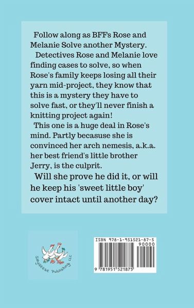 Follow along as BFFs Rose and Melanie Solve another Mystery. Detectives Rose and Melanie love finding cases to solve, so when Rose's family keeps losing all their yarn mid-project, they know that this is a mystery they have to solve fast, or they'll never finish a knitting project again! This one is a huge deal in Rose's mind, of course, she is convinced her arch nemesis, a.k.a. her best friend's little brother Jerry, is the culprit. Will she prove he did it, or will he keep his 'sweet little boy' cover intact until another day?