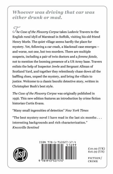 Whoever was driving that car was either drunk or mad. The Case of the Flowery Corpse takes Ludovic Travers to the English rural idyll of Marstead in Suffolk, visiting his old friend Henry Morle. The quiet village seems hardly the place for mystery. Yet, following a car crash, a blackmail case emerges - and worse, not one, but two murders. There are multiple suspects, including a pair of twin doctors and a femme fatale, not to mention the looming presence of a US Army base. Travers enlists the help of Inspector Jewle and Sergeant Allman of Scotland Yard, and together they relentlessly chase down all the baffling clues, unpeel the mystery, and bring the villain to justice. Welcome to a classic bucolic detective story, written in Christopher Bush's best style. The Case of the Flowery Corpse was originally published in 1956. This new edition features an introduction by crime fiction historian Curtis Evans. "Many small ingenuities of detection" New York Times "The best mystery novel I have read in the last six months . . . interesting backgrounds and rich characterization." Knoxville Sentinel