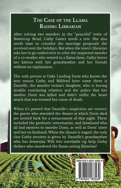 After solving two murders in the "peaceful" town of Buttercup Bend, Cathy Carter needs a rest. She also needs time to consider the marriage proposals she received over the holidays. But when the town's librarian asks her to go undercover to solve the suspected murder of a co-worker who retired to a llama farm, Cathy leaves her kittens with her grandmother and her friends without an explanation. The only person at Oaks Landing Farm who knows the true reason Cathy and Mildred have come there is Danielle, the murder victim's daughter, who is having trouble convincing relatives and the police that her mother Doris was killed and didn't suffer the heart attack that was termed her cause of death. When it's proved that Danielle's suspicions are correct, the guests who attended the dinner at which Doris died are invited back for a reenactment of that night. These included the gardener, veterinarian, and farmhand who all had motives to murder Doris, as well as Doris' sister and her ex-husband. When the dinner is staged, the only clue Cathy receives is given by Danielle's grandmother who has dementia. Will this unreliable tip help Cathy deduce who murdered the llama raising librarian?