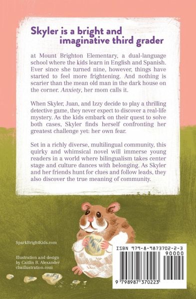 Skyler is a bright and imaginative third grader at Mount Brighton Elementary, a dual-language school where the kids learn in English and Spanish. Ever since she turned nine, however, things have started to feel more frightening. And nothing is scarier than the mean old man in the dark house on the corner. Anxiety, her mom calls it. When Skyler, Juan, and Izzy decide to play a thrilling detective game, they never expect to discover a real-life mystery. As the kids embark on their quest to solve both cases, Skyler finds herself confronting her greatest challenge yet: her own fear. Set in a richly diverse, multilingual community, this quirky and whimsical novel will immerse young readers in a world where bilingualism takes center stage and culture dances with belonging. As Skyler and her friends hunt for clues and follow leads, they also discover the true meaning of community.