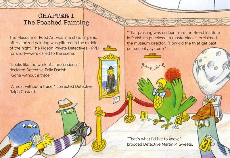 The Museum of Food Art is in a state of panic! A priceless painting was pilfered in the middle of the night. Fortunately, the Pigeon Private Detectives—PPD for short—are on the scene. These three detectives crave cracking a good case almost as much as they like snacks. But can they catch a thief who appears to be a master of disguise? Once again, author-illustrator Christee Curran-Bauer pokes fun at detective procedurals with kid-friendly humor, as she did in book one of the series, The Case of the Missing Tarts