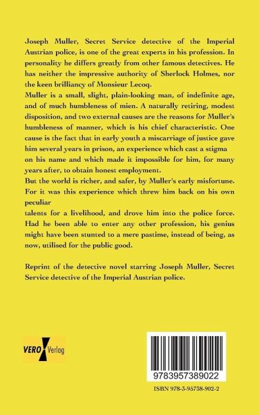 Joseph Muller, Secret Service detective of the Imperial Austrian police, is one of the great experts in his profession. In personality he differs greatly from other famous detectives. He has neither the impressive authority of Sherlock Holmes, nor the keen brilliancy of Monsieur Lecoq.