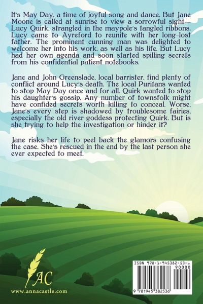 It's May Day, a time of joyful song and dance. But Jane Moone is called at sunrise to view a sorrowful sight - Lucy Quirk, strangled in the maypole's tangled ribbons. Lucy came to Ayreford to re-unite with her long-lost father. The prominent cunning man is delighted to welcome her into his work, as well as his life. But Lucy has her own agenda and soon starts spilling secrets from his confidential patient notebooks. Jane and John Greenslade, local barrister, find plenty of conflict around Lucy's death. The local Puritans wanted to stop May Day once and for all. Quirk wanted to stop his daughter's gossip. Any number of townsfolk might have confided secrets worth killing to conceal. Worse, Jane's every step is shadowed by troublesome fairies, especially the old river goddess protecting Quirk. But is she trying to help the investigation or hinder it? Jane risks her life to peel back the glamors confusing the case. She's rescued in the end by the last person she ever expected to meet.