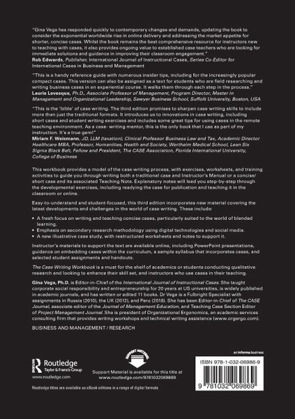 "I have no hesitation in recommending this third edition of the Case Writing Workbook. Gina Vega has responded quickly to contemporary changes and demands, updating the book to consider the exponential worldwide rise in online delivery and addressing the market appetite for shorter, concise cases. Whilst the book remains the best comprehensive resource for instructors new to teaching with cases, it also provides ongoing value to established case teachers who are looking for immediate solutions and guidance in improving their classroom engagement." - Rob Edwards, Publisher, International Journal of Instructional Cases, Series Co-Editor for International Casebooks of Business and Management