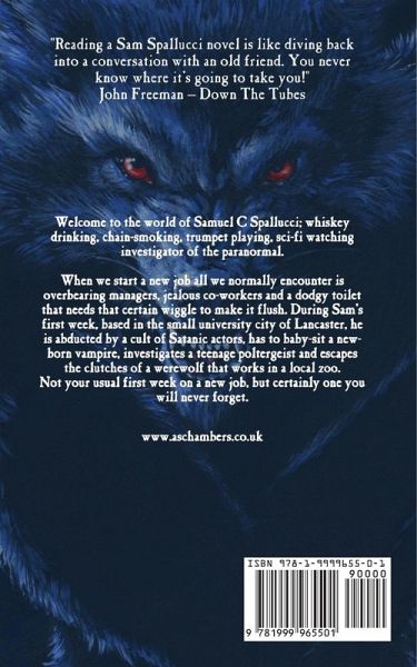 Welcome to the world of Samuel C Spallucci; whiskey drinking, chain-smoking, trumpet playing, sci-fi watching investigator of the paranormal. When we start a new job all we normally encounter is overbearing managers, jealous co-workers and a dodgy toilet that needs that certain wiggle to make it flush. During Sam's first week, based in the small university city of Lancaster, he is abducted by a cult of Satanic actors, has to baby-sit a new-born vampire, investigates a teenage poltergeist and escapes the clutches of a werewolf that works in a local zoo. Not your usual first week on a new job, but certainly one you will never forget. www.aschambers.co.uk