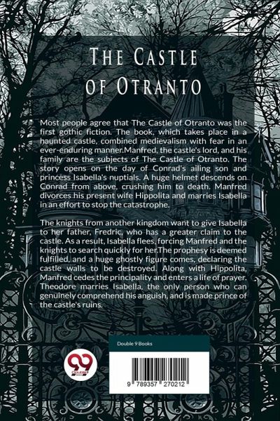 Most people agree that The Castle of Otranto was the first gothic fiction. The book, which takes place in a haunted castle, combined medievalism with fear in an ever-enduring manner.Manfred, the castle's lord, and his family are the subjects of The Castle of Otranto. The story opens on the day of Conrad's ailing son and princess Isabella's nuptials. A huge helmet descends on Conrad from above, crushing him to death. Manfred divorces his present wife Hippolita and marries Isabella in an effort to stop the catastrophe.The knights from another kingdom want to give Isabella to her father, Fredric, who has a greater claim to the castle. As a result, Isabella flees, forcing Manfred and the knights to search quickly for her.The prophesy is deemed fulfilled, and a huge ghostly figure comes, declaring the castle walls to be destroyed. Along with Hippolita, Manfred cedes the principality and enters a life of prayer. Theodore marries Isabella, the only person who can genuinely comprehend his anguish, and is made prince of the castle's ruins.