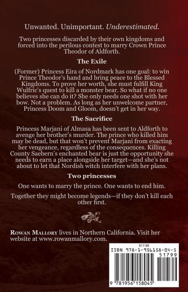 Unwanted. Unimportant. Underestimated.Two princesses discarded by their own kingdoms and forced into the perilous contest to marry Crown Prince Theodor of Aldforth.The Exile(Former) Princess Eira of Nordmark has one goal: to win Prince Theodor's hand and bring peace to the Blessed Kingdoms. To prove her worth, she must fulfill King Wulfric's quest to kill a monster bear. So what if no one believes she can do it? She only needs one shot with her bow. Not a problem. As long as her unwelcome partner, Princess Doom and Gloom, doesn't get in her way.The SacrificePrincess Marjani of Almasa has been sent to Aldforth to avenge her brother's murder. The prince who killed him may be dead, but that won't prevent Marjani from exacting her vengeance, regardless of the consequences. Killing County Saebern's enchanted bear is just the opportunity she needs to earn a place alongside her target-and she's not about to let that Nordish witch interfere with her plans.Two princessesOne wants to marry the prince. One wants to end him.Together they might become legends-if they don't kill each other first. Perfect for fans of Naomi Novik's Spinning Silver and Jennifer Donnelly's Stepsister, this fairy-tale adjacent historical fantasy will take you on an adventure inspired by friendship and forging your place in the world.